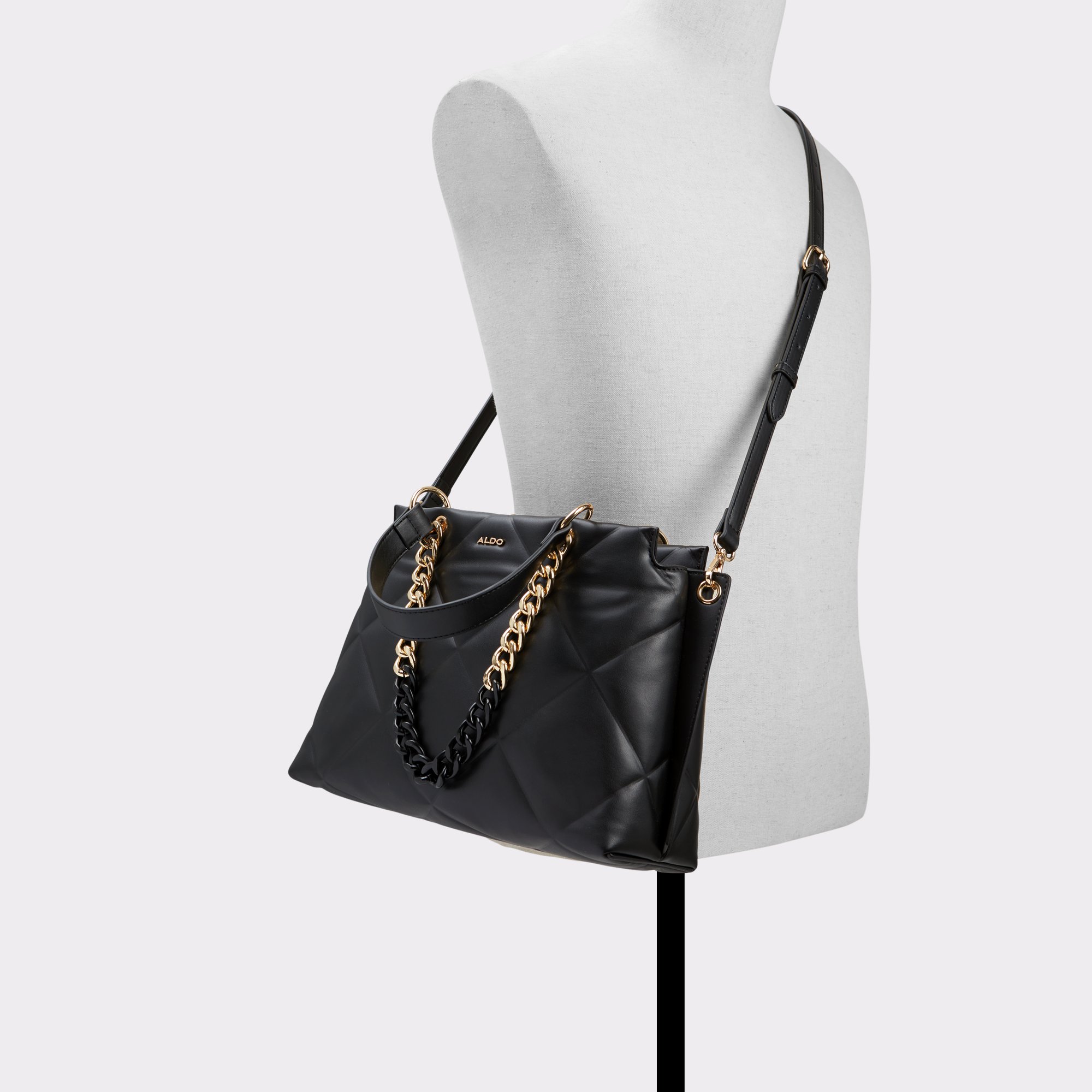 The slim and chic profile of this satchel bag provides just enough storage space for all your essentials. Chain detailing and quilted finish add the perfect touch of luxury.