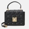 This quilted top handle bag with metal stud detailing is very spacious enough to hold all the essentials, this single-compartment bag features gold-tone hardware and a magnetic snap closure. The removable strap adjusts to turn this piece into a cross-body bag.