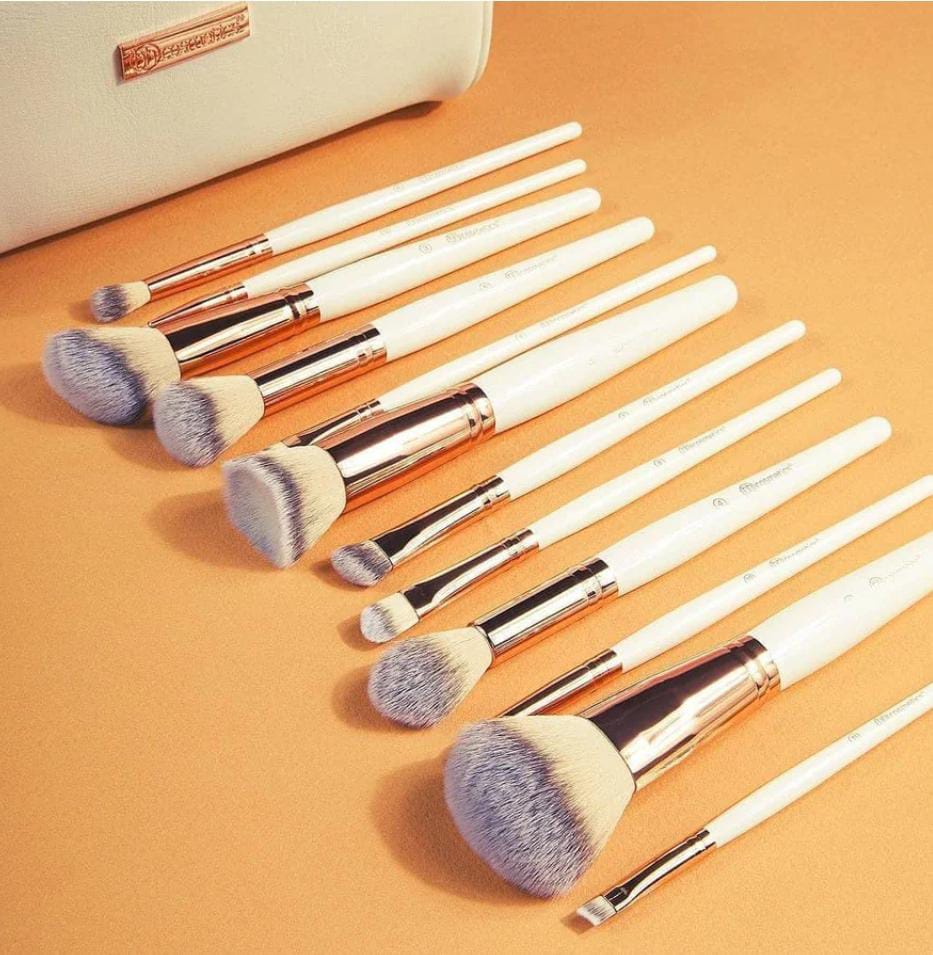 A set of twelve face and eye brushes. Made with super soft synthetic bristles and