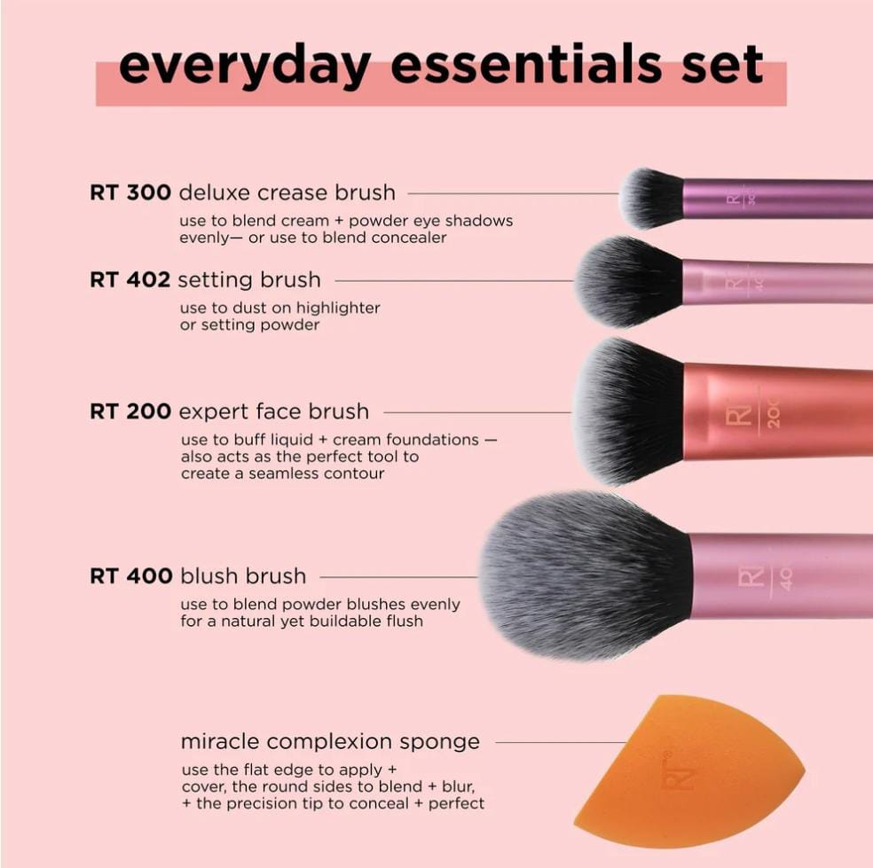 • The Real Techniques Everyday Essentials Set is your one and done makeup brush kit for any makeup look