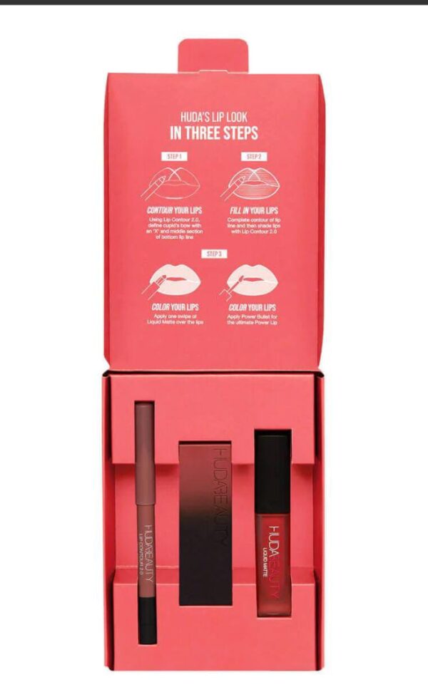 Meet the Lip Trio a simple – yet – stunning homage to Huda Beauty’s nearest and dearest staples. Huda curated our most-loved lip shades into a pigment-packed, monochromatic kit, complete with a Power Bullet Matte Lipstick, Liquid Matte Liquid Lipstick in Icon, and Lip Contour 2.0 Automatic Lip Pencil in the prettiest coordinating pinks.