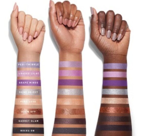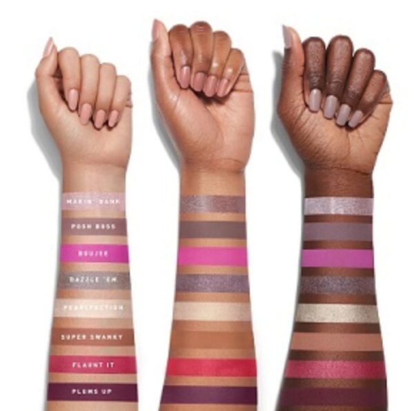 ROW 1: Makin’ Bank / shimmering lilac, Posh Boss / matte heather greige, Boujee / matte tropical hibiscus, Dazzle ‘Em / sheer pewter shimmer, Pearlfection / mother of pearl satin, Super Swanky / matte latte, Flaunt It / ripe raspberry satin, Plums Up / matte plummy merlot
